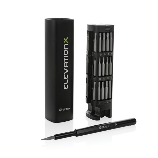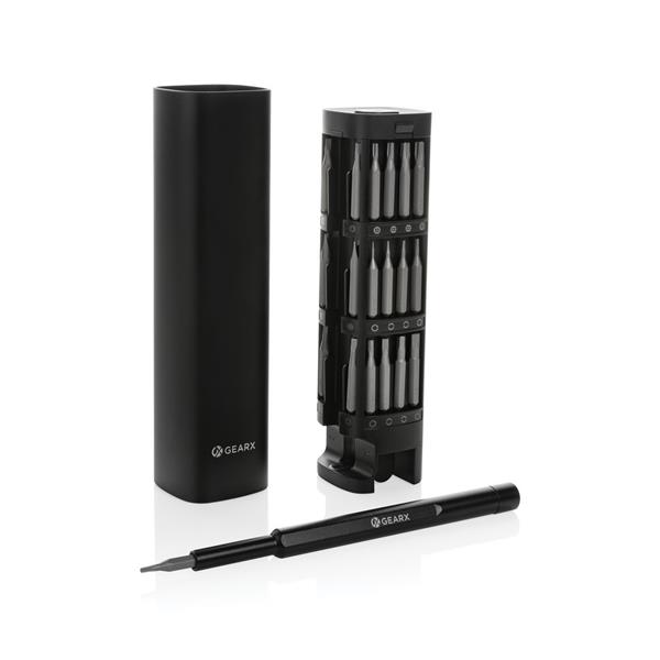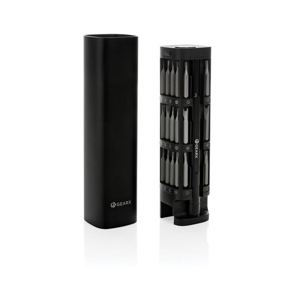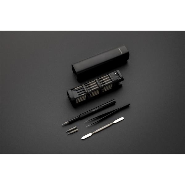 Śrubokręt, zestaw 56 końcówek w magnetycznym pudełku, etui wykonane z aluminium z recyklingu, całkowita zawartość materiałów z recyklingu obliczona na podstawie wagi całkowitej przedmiotu: 22%, ślad węglowy produktu: 2,5 kg CO2