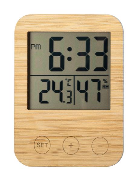 Bambusowy zegarek biurkowy ze stacją pogodową (wyświetla temperaturę i wilgotność). Zasilany 2 bateriami AAA. Brak baterii w zestawie. Description: Bambusowy zegarek biurkowy ze stacją pogodową (wyświetla temperaturę i wilgotność). Zasilany 2 bateriami AAA. Brak baterii w zestawie. Primary Color: naturalny Ilość i typ baterii: 2×AAA Zawiera baterie: Nie Material 1: Bambus Rozmiar: 85×115×70 mm