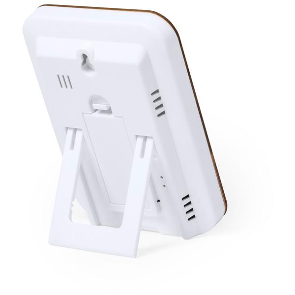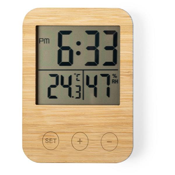 Stacja pogodowa, zegar, temperatura, wilgotność powietrza, bambusowy front