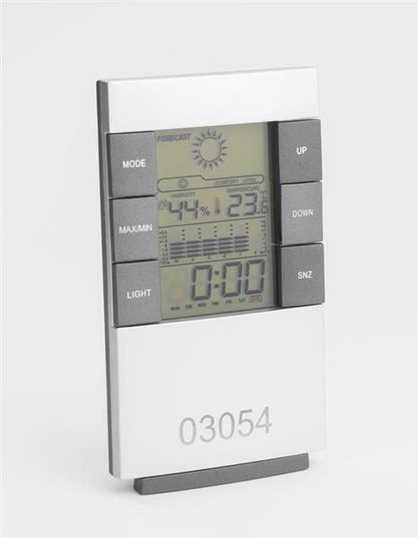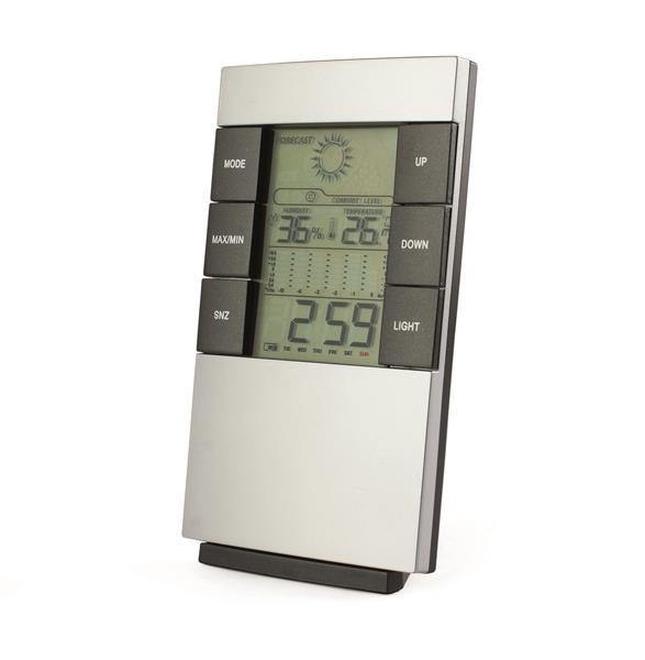 Używając tej nowoczesnej stacji prognozowanie pogody nie będzie już stanowiło problemu. Stacja posiada następujące funkcje:termometr (max/min), higrometr (max/min), zegar z budzikiem, kalendarz, biometr, przewidywanie pogody, podświetlenie ekranu. Logo nadrukujemy lub wygrawerujemy z przodu produktu.