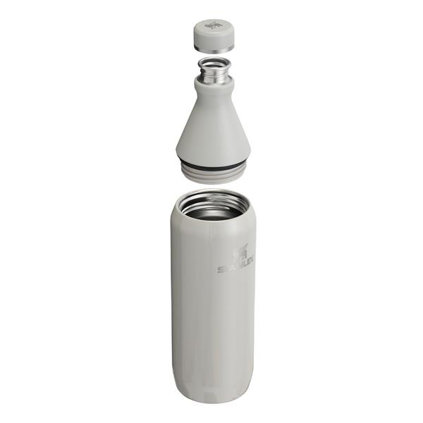 Praktyczna i elegancka butelka na wodę o pojemności 0,6 LButelka wykonana jest w 90% ze stali nierdzewnej pochodzącej z recyklingu, naturalnie wolnej od BPA.Jej tradycyjny kształt został przełamany praktycznym rozwiązaniem z dwoma otworami.Górny wąski otwór pełni rolę ustnika do picia.Szeroki otwór służy zaś do łatwiejszego mycia butelki oraz dodawania do napoju kostek lodu lub kawałków owoców.Właściwości termiczne butelki pozwalają na utrzymanie zimnej temperatury wody do 11 godzin po dodaniu kostek lodu, zaś bez dodatku lodu około 6 godzin.Butelka jest w 100% szczelna. Pod korkiem znajduje się silikonowa uszczelka.Rozmiar butelki pasuje do większości uchwytów rowerowych i samochodowych.Butelka przeznaczona jest do zimnych napojów. Nie należy wlewać do niej gorących i wrzących płynów z uwagi na ryzyko poparzenia i uszkodzenie butelki.* Mycie w zmywarce produktów, które są do tego przeznaczone może z czasem powodować szybsze pogarszanie się ich właściwości wizualnych w porównaniu do mycia ręcznego. Jeśli jest dla Ciebie ważne, aby Twój produkt na dłużej zachował swój wygląd, producent zaleca mycie ręczne za pomocą delikatnej gąbki.