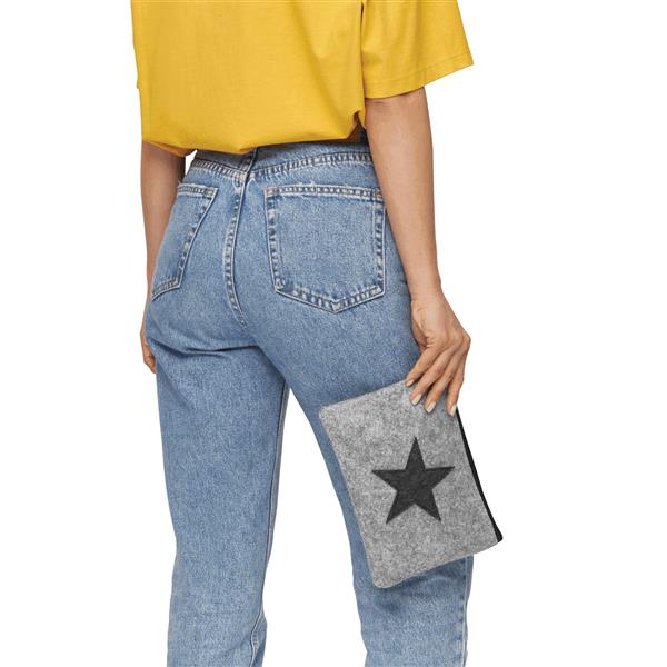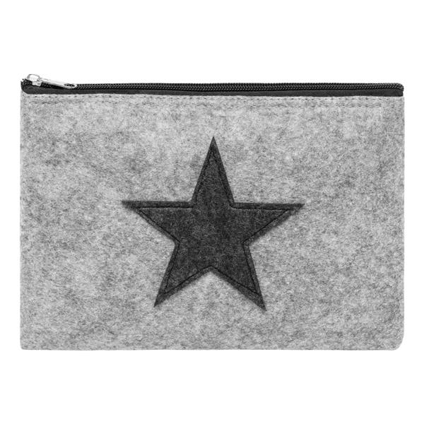 Filcowa torebka-organizer STAR DUST USE zamykana na zamek, wszechstronna, może służyć m.in. jako etui na długopisy, akcesoria lub jako kosmetyczka, z przodu aplikacja z motywem gwiazdy.