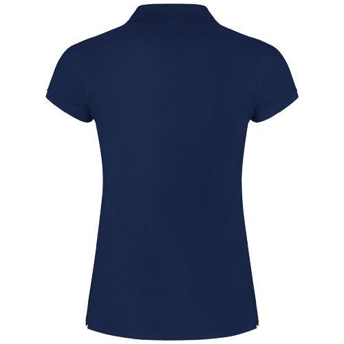 Star koszulka damska polo z krótkim rękawemDamska koszulka polo z krótkim rękawem. Wzmocnione kryte szwy w wewnętrznym kołnierzyku. Prążkowany kołnierzyk i mankiety 1×1. Boczne szwy i dopasowany krój. Wąskie zapięcie na 3 guziki. Rozcięcia po bokach. Usuwalna metka. Materiał: Splot Piqué100% Bawełna, 200 g/m2 Kolor: Navy Blue