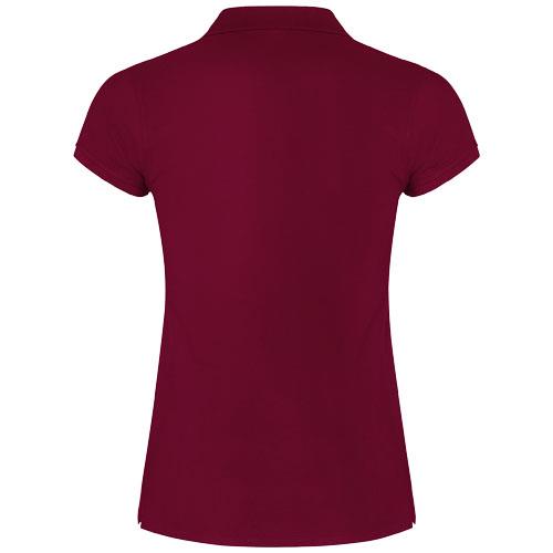 Star koszulka damska polo z krótkim rękawemDamska koszulka polo z krótkim rękawem. Wzmocnione kryte szwy w wewnętrznym kołnierzyku. Prążkowany kołnierzyk i mankiety 1×1. Boczne szwy i dopasowany krój. Wąskie zapięcie na 3 guziki. Rozcięcia po bokach. Usuwalna metka. Materiał: Splot Piqué100% Bawełna, 200 g/m2 Kolor: Garnet