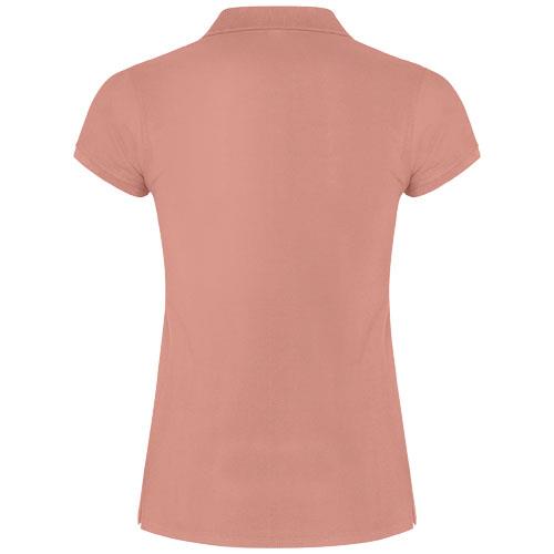 Star koszulka damska polo z krótkim rękawemDamska koszulka polo z krótkim rękawem. Wzmocnione kryte szwy w wewnętrznym kołnierzyku. Prążkowany kołnierzyk i mankiety 1×1. Boczne szwy i dopasowany krój. Wąskie zapięcie na 3 guziki. Rozcięcia po bokach. Usuwalna metka.