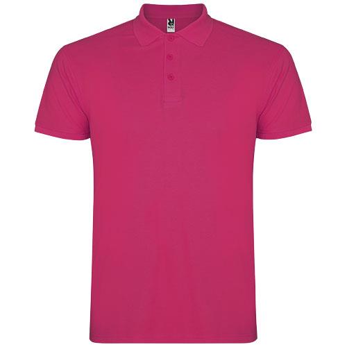 Star koszulka męska polo z krótkim rękawemMęska koszulka polo z krótkim rękawem. Wzmocnione kryte szwy w wewnętrznym kołnierzyku. Prążkowane mankiety i kołnierzyk 1×1. Szwy boczne. Zapięcie na 3 guziki i boczne rozcięcia. Opcjonalna kieszeń. Usuwalna metka.