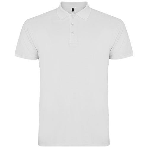 Star koszulka męska polo z krótkim rękawemMęska koszulka polo z krótkim rękawem. Wzmocnione kryte szwy w wewnętrznym kołnierzyku. Prążkowane mankiety i kołnierzyk 1×1. Szwy boczne. Zapięcie na 3 guziki i boczne rozcięcia. Opcjonalna kieszeń. Usuwalna metka. Materiał: Splot Piqué100% Bawełna, 200 g/m2 Kolor: Biały