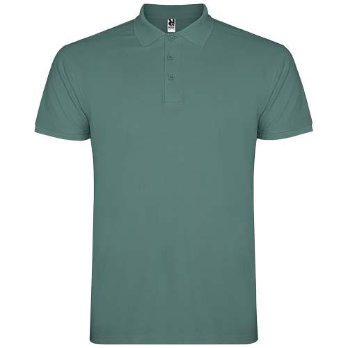 Star koszulka męska polo z krótkim rękawemMęska koszulka polo z krótkim rękawem. Wzmocnione kryte szwy w wewnętrznym kołnierzyku. Prążkowane mankiety i kołnierzyk 1×1. Szwy boczne. Zapięcie na 3 guziki i boczne rozcięcia. Opcjonalna kieszeń. Usuwalna metka.