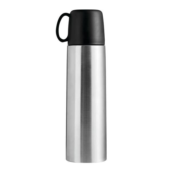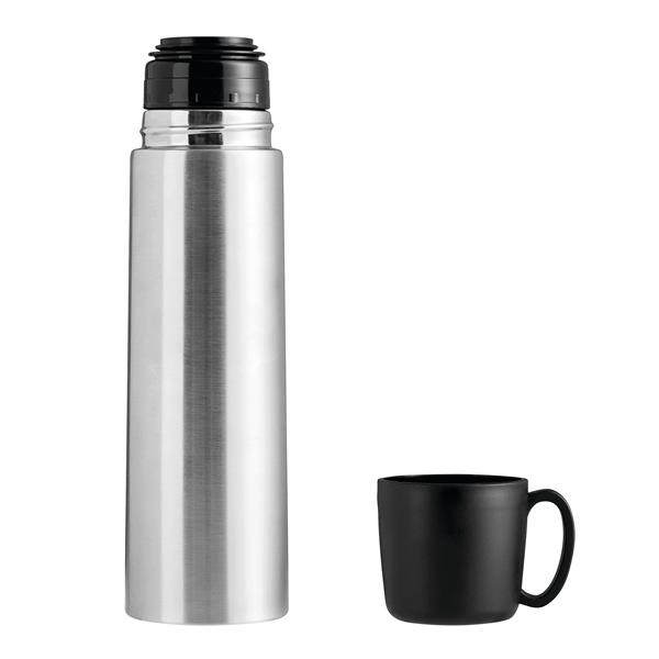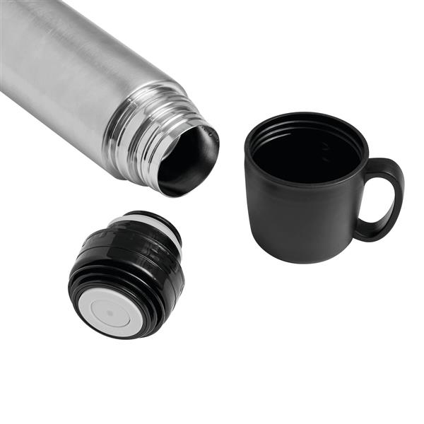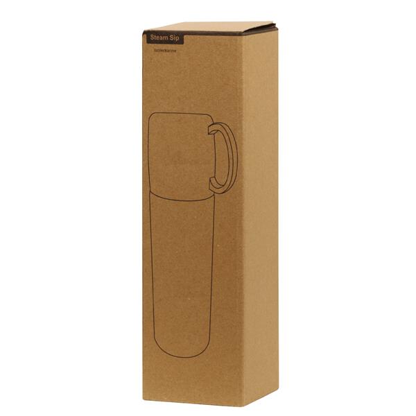 Termos próżniowy STEAMSIP z podwójną izolacją. Wewnątrz i na zewnątrz wykonany jest ze stali nierdzewnej. Posiada bezpieczną zakręcaną pokrywkę z uchwytem (może być używana jako kubek), plastikową zakrętkę z przyciskiem i silikonowy pierścień uszczelniający. O pojemności ok. 500 ml. Utrzymuje ciepło przez ok. 8 godzin i zimno nawet do 12. Zapakowany jest w pudełko.
