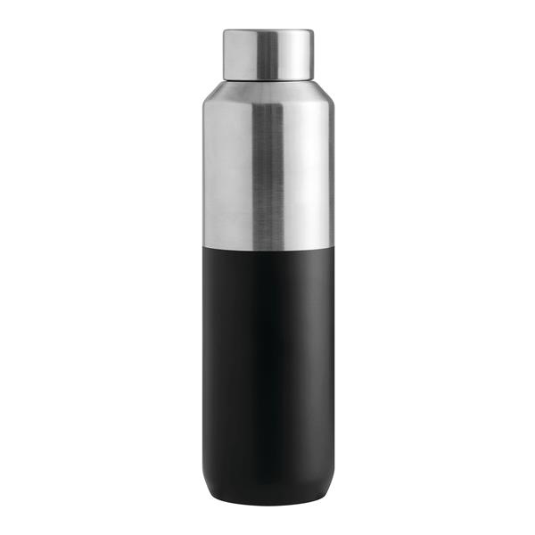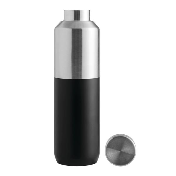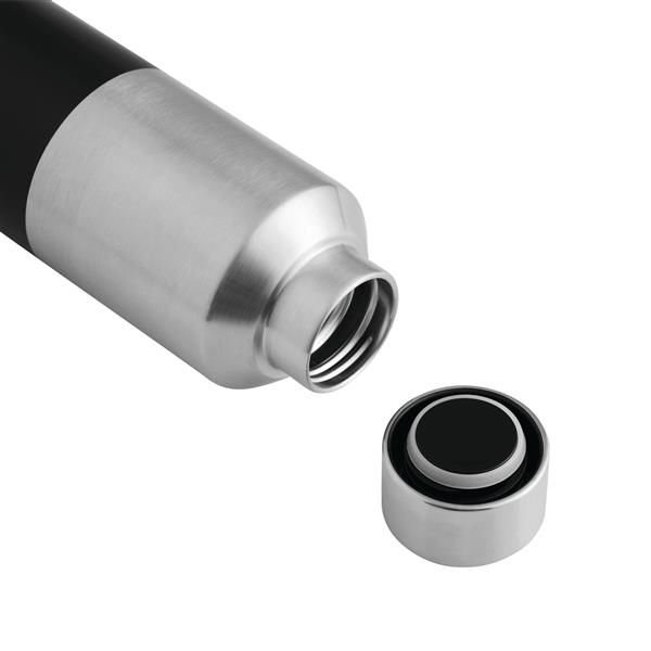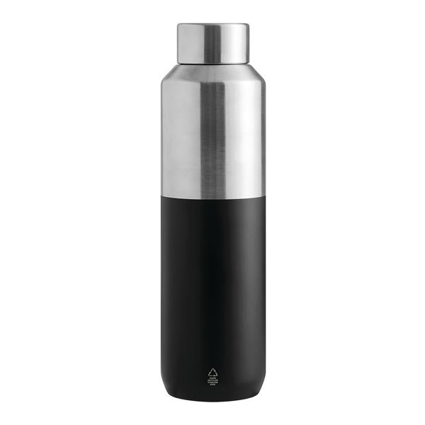 Próżniowa butelka STEECO z podwójną izolacją. Wewnątrz wykonana ze stali nierdzewnej z recyklingu, na zewnątrz ze stali nierdzewnej. Posiada pokrywkę z bezpieczną zakrętką i silikonowym pierścieniem uszczelniającym. O pojemności ok. 600 ml. Utrzymuje ciepło przez ok. 8 godzin i zimno nawet do 12. Zapakowana jest w pudełko.