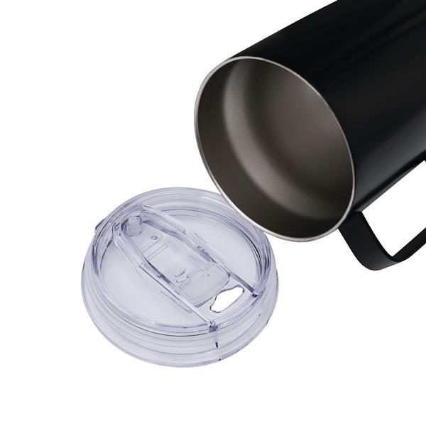 Próżniowy kubek STEELJOURNEY, z podwójną izolacją. Wewnątrz i na zewnątrz wykonany ze stali nierdzewnej, z korkowym dnem i praktycznym uchwytem. Posiada plastikową pokrywę z silikonowym pierścieniem uszczelniającym i zintegrowanym przesuwanym otworem do picia. O pojemności ok. 350 ml. Utrzymuje ciepło przez ok. 4 godziny i zimno nawet do 8. Zapakowany jest w pudełko.