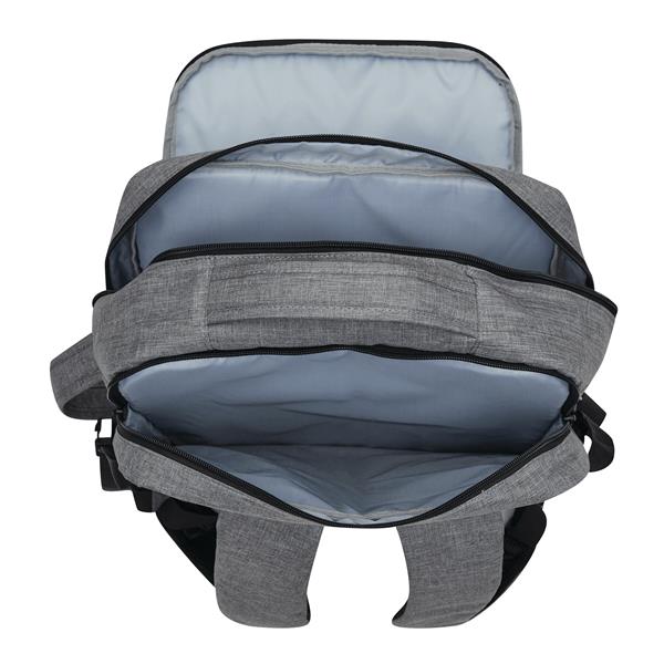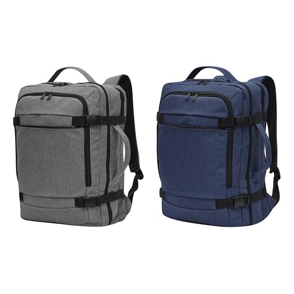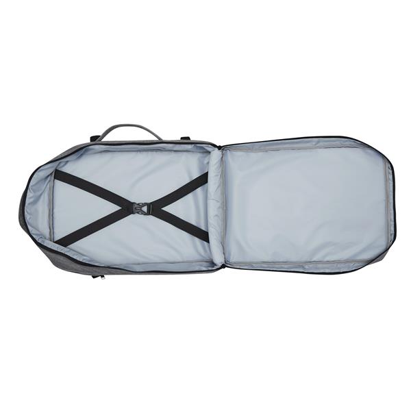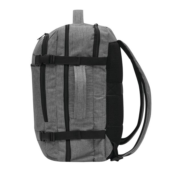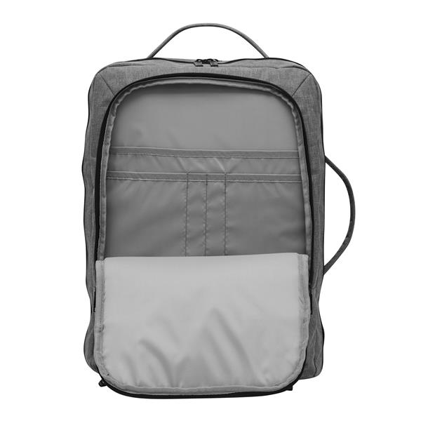 Plecak STEWARD posiada 2 przednie komory zapinane na zamek w tym jedną z organizerem (3 wsuwane kieszenie, 2 pętle na długopisy), 1 dużą wyściełaną komorę główną z paskiem do pakowania oraz 1 miękką komorę na laptopa – obie zapinane na zamek błyskawiczny. Dla wygody posiada też wzmocnione uchwyty (górny i boczny), wyściełane ergonomiczne szelki i plecy z paskiem do montażu na uchwyt walizki oraz 2 paski kompresyjne z zatrzaskami po każdej stronie.