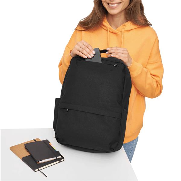 Plecak STOCKHOLM z 2 przednimi kieszeniami z zamkiem błyskawicznym, główną kieszenią z zamkiem błyskawicznym, wyściełaną kieszenią wewnętrzną na laptopa lub tablet, organizerem z 4 kieszeniami, 1 wsuwaną kieszenią z boku, wyściełanym uchwytem, wyściełanymi szelkami ergonomicznymi, wyściełanymi plecami i paskiem umieszczonym z tyłu. Materiał: 300D Poliester Kolor: czarny Tagi: Plecaki,torby,bagaż