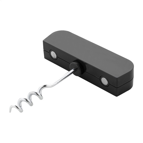 Stojak na butelkę wina wykonany z bambusa i poddanego recyklingowi tworzywa ABS, ze stalowym korkociągiem.