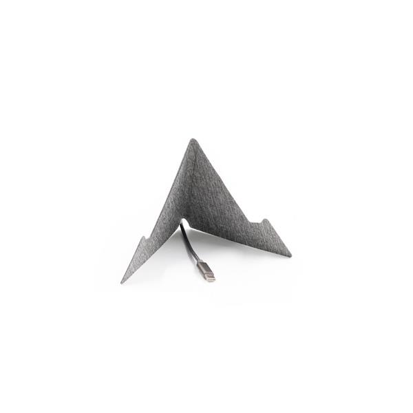 Stojak na telefon BrandCharger Ascend Mini, magnetyczne zamknięcie ułatwiające przenoszenie, mieści smartfony i tablety o przekątnej do 13″, zawiera organizer na kable pomagający zachować porządek, produkt wykonany z RPET, poliestru i kartonu