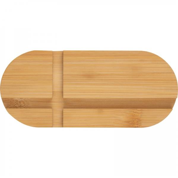 Podkładka wykonana z drewna bambusowego, dwa rozmiary wycięć pozwalają na umieszczenie na niej zarówno telefonu jak i tableta.