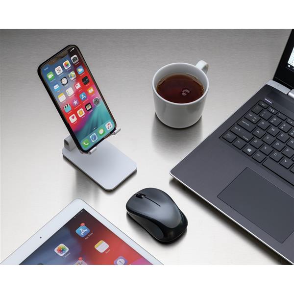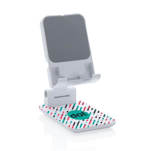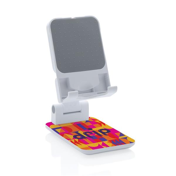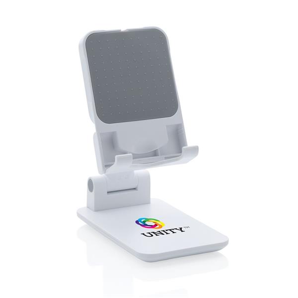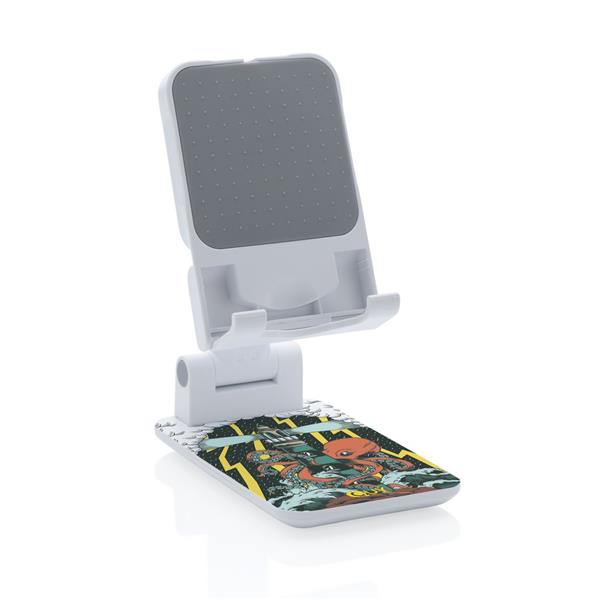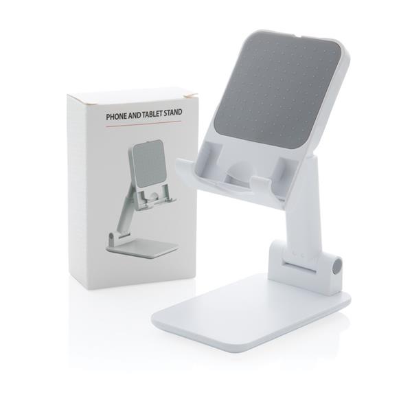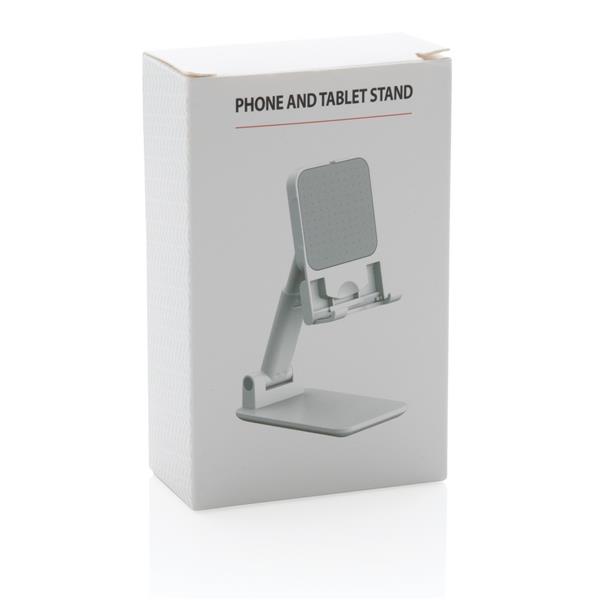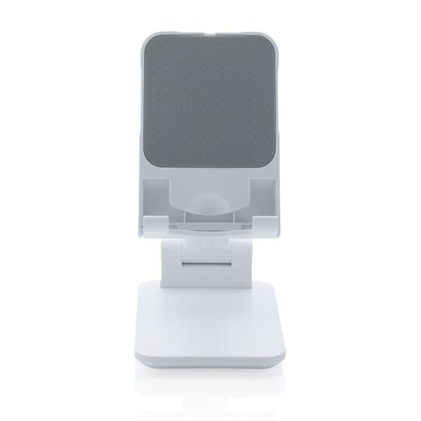 Stojak na telefon, tablet, wykonany z ABS, regulowana wysokość, silikonowy element chroniący przed zarysowaniem w którym można umieścić ładowarkę Magsafe, ciężka podstawa i silikonowe paski zapewniają stabilność, ślad węglowy produktu: 1,03 kg CO2
