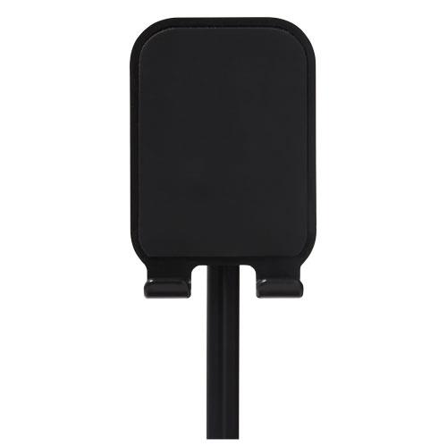 Stojak na telefon/tablet wykonany z aluminium i plastiku ABS. Zarówno wysokość, jak i kąt widzenia można regulować, dzięki czemu jest to idealne akcesorium do prowadzenia rozmów konferencyjnych, transmisji na żywo lub po prostu do oglądania filmów. Spód ma antypoślizgowy materiał, który zapobiega przesuwaniu się. Dostarczane w wysokiej jakości pudełku z papieru Kraft z kolorową naklejką.