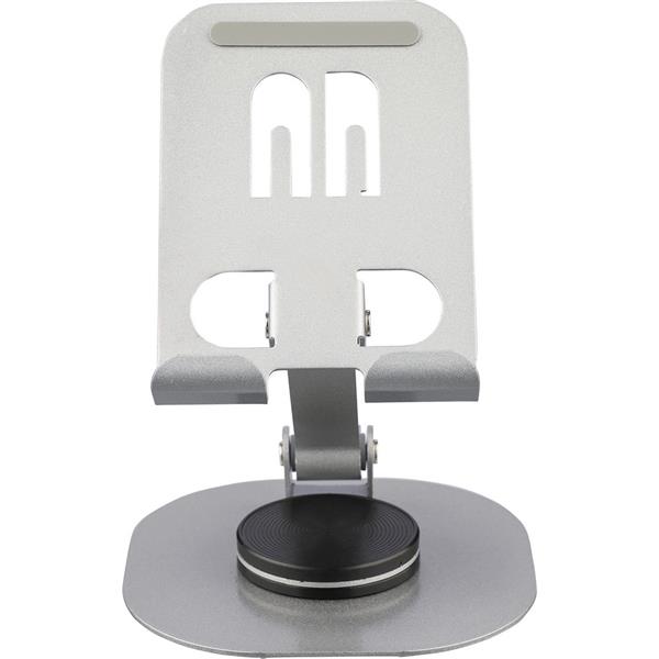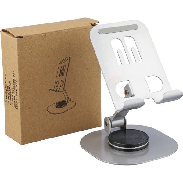 Stojak na telefon funkcją obrotu o 360 stopni, składany na płasko, zapakowany w białe pudełko, produkt wykonany z aluminium