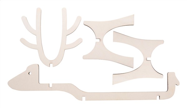 Stojak na wino ze sklejki brzozowej w kształcie renifera. Dostarczany na płasko.