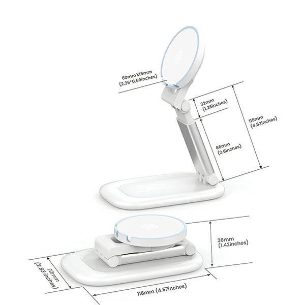 Budowa podstawki pozwala wymienić płytę magnetyczną uchwytu na ładowarkę indukcyjną Iphone MagSafe.