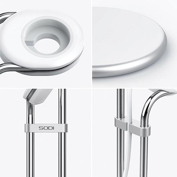 | Materiał | Stal nierdzewna (ramiona stojaka), wysokiej jakości stop aluminium (podstawa), antypoślizgowe podkładki silikonowe |
