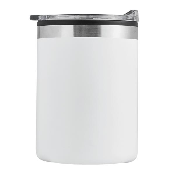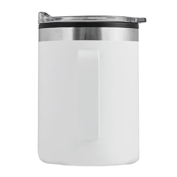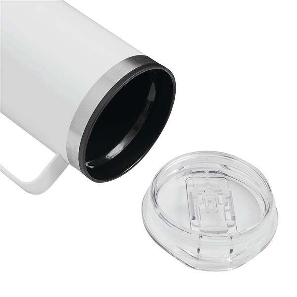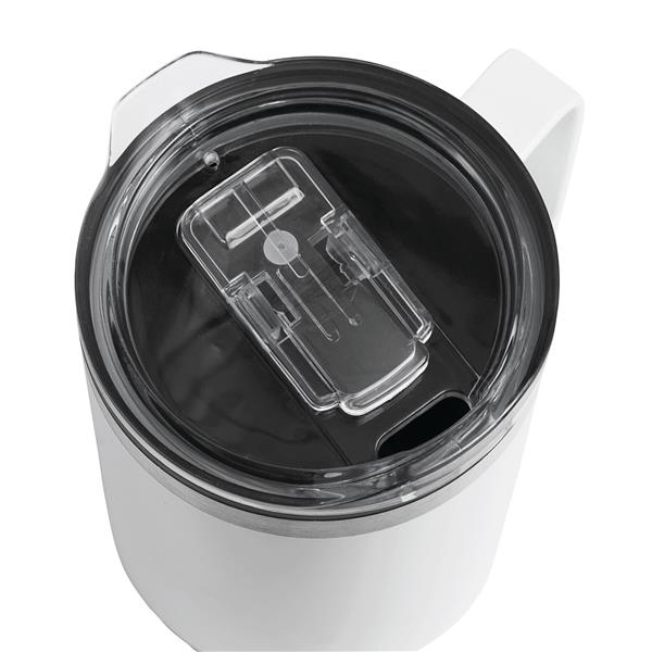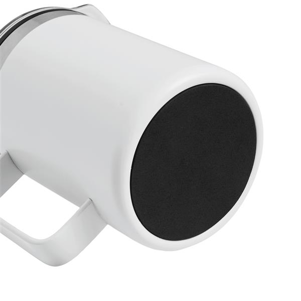 Kubek termiczny z podwójną izolacją STYLEMUG.. Na zewnątrz wykonany jest ze stali nierdzewnej, a wewnątrz z tworzywa sztucznego. Posiada pokrywkę z silikonową uszczelką i zintegrowanym otworem do picia. Pojemność kubka to ok. 400 ml. Utrzymuje on ciepło przez ok. 2 godziny i zimno nawet do 4 godzin. Zapakowany jest w pudełko.