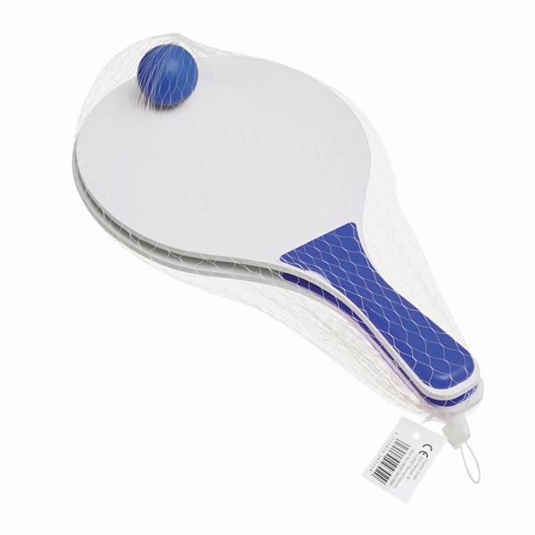 Zestaw plażowy SUMMER FEELING zawiera dwie drewniane paletki z kolorowymi uchwytami, jedną miękką piłkę. Zapakowany w siatkową torbę. Materiał: Drewno/Plastik Kolor: biały, niebieski Tagi: Artykuły plażowe,artykuły rekreacyjne,Outdoor,gry,zabawki