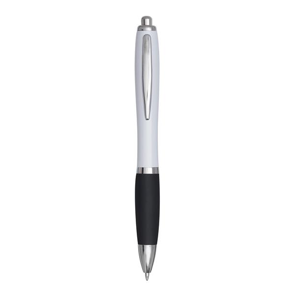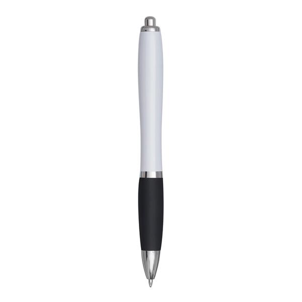 Długopis SWAY z profilowanym trzonem, mechanizmem na przycisk, niebieski wkład. Materiał: Plastik/Stal Kolor: biały, czarny Tagi: Długopisy,długopisy,akcesoria biurowe,przybory do pisania