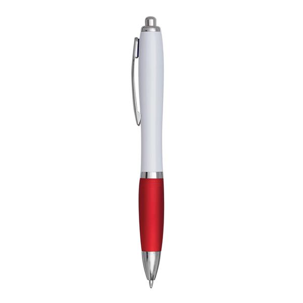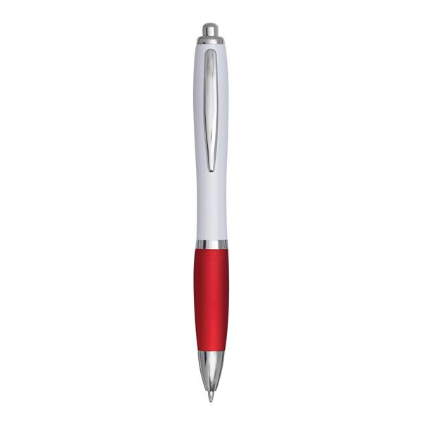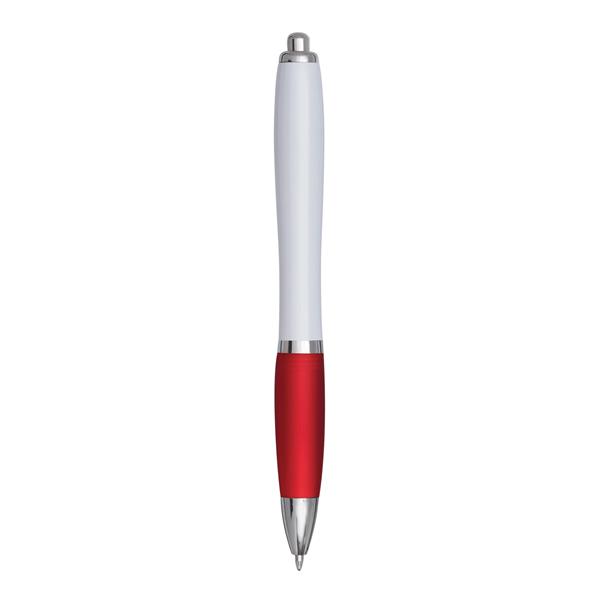 Długopis SWAY z profilowanym trzonem, mechanizmem na przycisk, niebieski wkład. Materiał: Plastik/Stal Kolor: biały, czerwony Tagi: Długopisy,długopisy,akcesoria biurowe,przybory do pisania