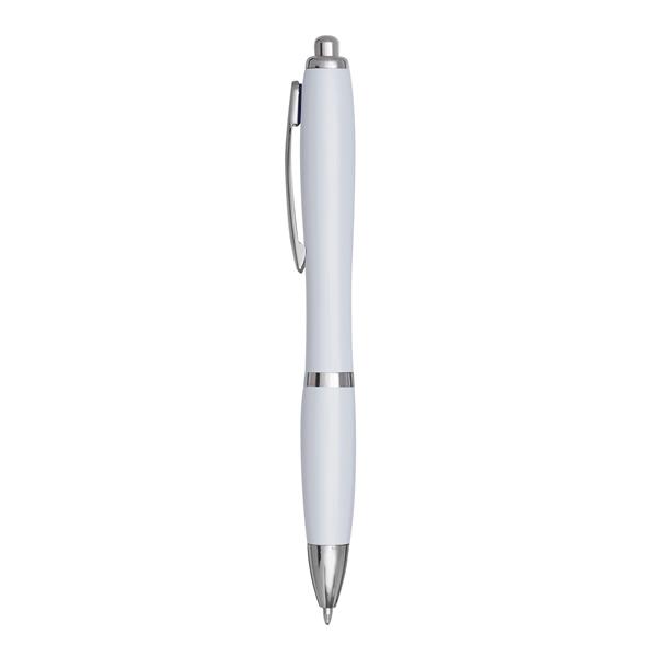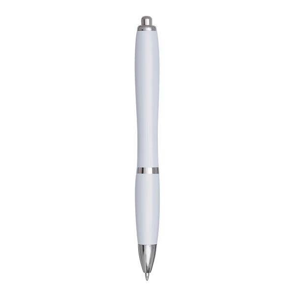 Długopis SWAY z profilowanym trzonem, mechanizmem na przycisk, niebieski wkład. Materiał: Plastik/Stal Kolor: biały Tagi: Długopisy,długopisy,akcesoria biurowe,przybory do pisania