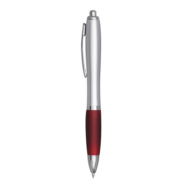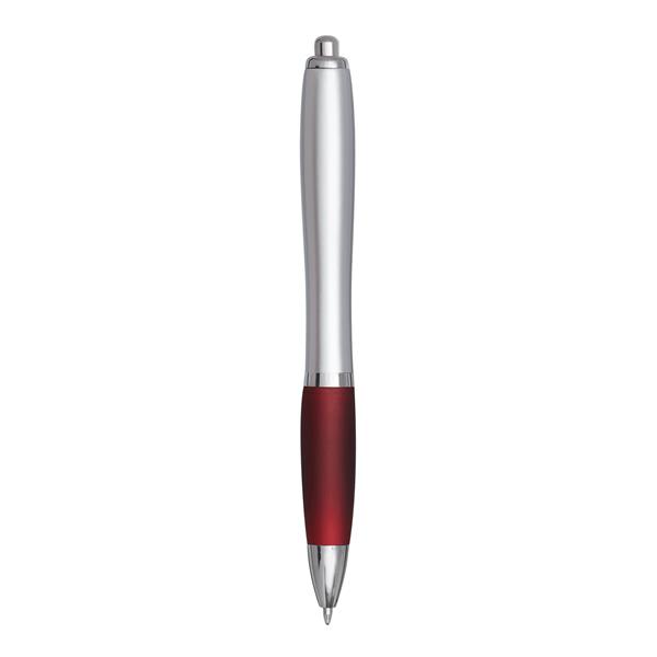 Długopis SWAY z profilowanym trzonem, mechanizmem na przycisk, niebieski wkład. Materiał: Plastik/Stal Kolor: bordowy, srebrny Tagi: Długopisy,długopisy,akcesoria biurowe,przybory do pisania