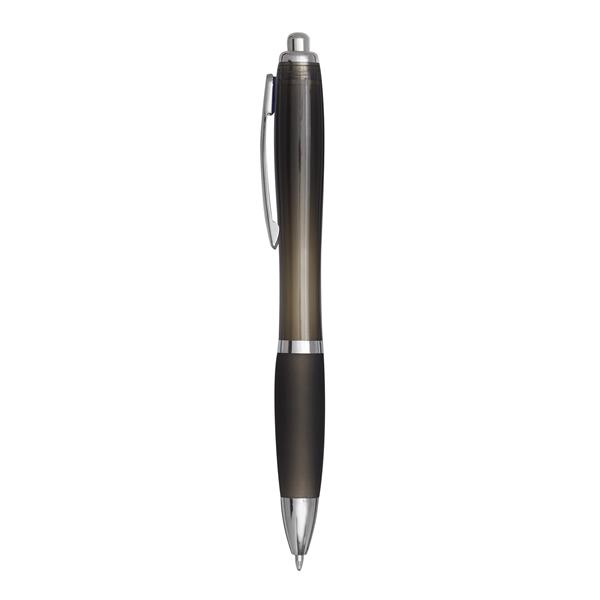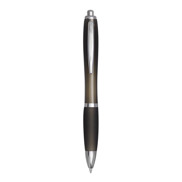 Długopis SWAY z profilowanym trzonem, mechanizmem na przycisk, niebieski wkład. Materiał: Plastik/Stal Kolor: czarny przezroczysty Tagi: Długopisy,długopisy,akcesoria biurowe,przybory do pisania