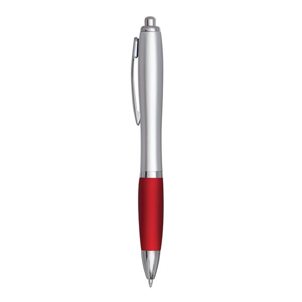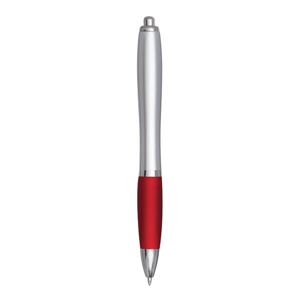 Długopis SWAY z profilowanym trzonem, mechanizmem na przycisk, niebieski wkład. Materiał: Plastik/Stal Kolor: czerwony, srebrny Tagi: Długopisy,długopisy,akcesoria biurowe,przybory do pisania