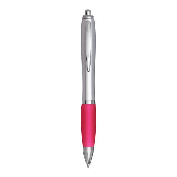 Długopis SWAY z profilowanym trzonem, mechanizmem na przycisk, niebieski wkład. Materiał: Plastik/Stal Kolor: magenta, srebrny Tagi: Długopisy,długopisy,akcesoria biurowe,przybory do pisania