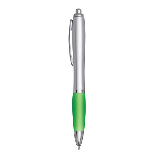 Długopis SWAY z profilowanym trzonem, mechanizmem na przycisk, niebieski wkład. Materiał: Plastik/Stal Kolor: srebrny, zielone jabłko Tagi: Długopisy,długopisy,akcesoria biurowe,przybory do pisania