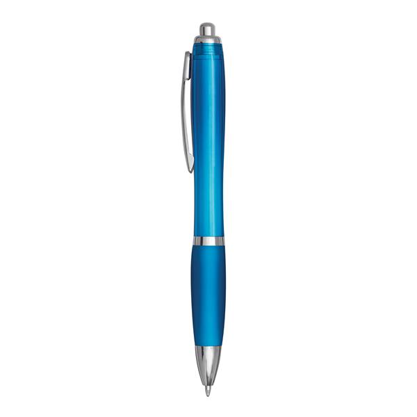 Długopis SWAY z profilowanym trzonem, mechanizmem na przycisk, niebieski wkład.