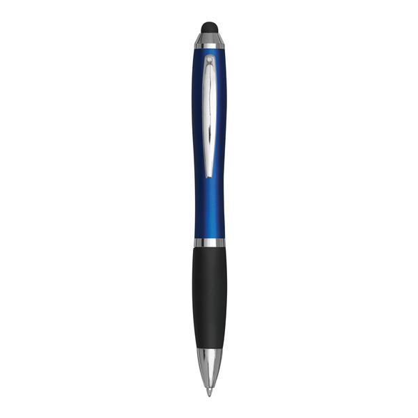 Długopis SWAY TOUCH z profilowanym korpusem, mechanizmem rotacyjnym, uchwytem pokrytym gumą i końcówką do ekranu dotykowego, z możliwością wymiany wkładu, tusz niebieski.