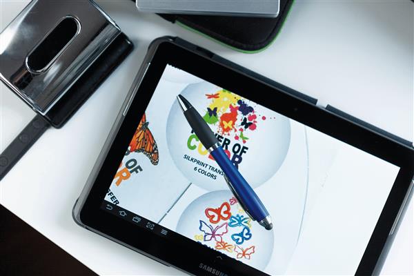 Długopis SWAY TOUCH z profilowanym korpusem, mechanizmem rotacyjnym, uchwytem pokrytym gumą i końcówką do ekranu dotykowego, z możliwością wymiany wkładu, tusz niebieski. Materiał: Plastik/Stal Kolor: niebieski Tagi: Długopisy,długopisy,akcesoria biurowe,przybory do pisania,akcesoria do smartfonów,pióra do ekranów dotykowych,akcesoria do telefonów komórkowych/smartfonów,akcesoria do tabletów