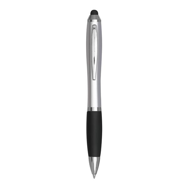 Długopis SWAY TOUCH z profilowanym korpusem, mechanizmem rotacyjnym, uchwytem pokrytym gumą i końcówką do ekranu dotykowego, z możliwością wymiany wkładu, tusz niebieski. Materiał: Plastik/Stal Kolor: srebrny Tagi: Długopisy,długopisy,akcesoria biurowe,przybory do pisania,akcesoria do smartfonów,pióra do ekranów dotykowych,akcesoria do telefonów komórkowych/smartfonów,akcesoria do tabletów