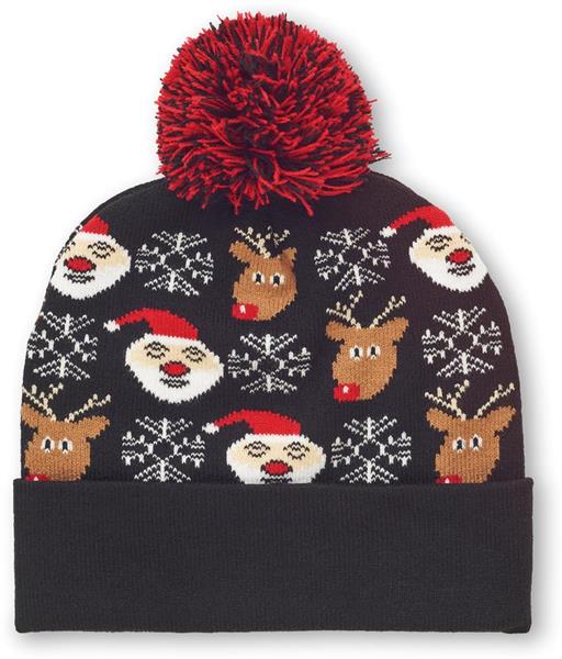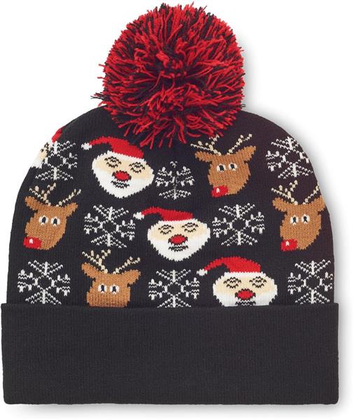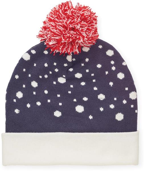 Świąteczna dzianinowa czapka z mankietem i pomponem z miękkiego rozciągliwego akrylu.