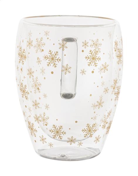 Kubek termiczny ze szkła borokrzemowego z podwójnymi ściankami, z motywem świątecznego płatka śniegu, 350 ml. W pudełku z papieru typu kraft.