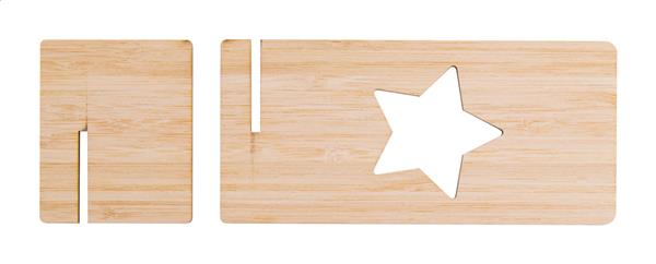 Uchwyt/stojak na telefon na biurko ze sklejki bambusowej z wyciętym motywem świątecznym. Dostarczany na płasko. Description: Uchwyt/stojak na telefon na biurko ze sklejki bambusowej z wyciętym motywem świątecznym. Dostarczany na płasko. Primary Color: naturalny Material 1: Bambus Shape: gwiazda Rozmiar: 70×145×57 mm