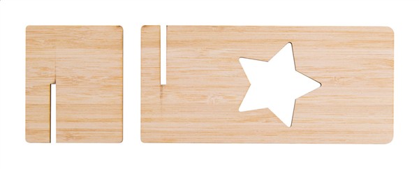 Uchwyt/stojak na telefon na biurko ze sklejki bambusowej z wyciętym motywem świątecznym. Dostarczany na płasko.
