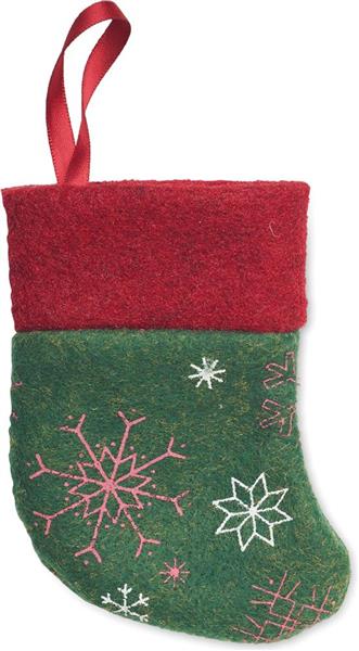 Świąteczny zestaw sztućców deserowych zawierający łyżkę i widelec ze stali nierdzewnej oraz bawełnianą serwetkę 150 gr/m2. Zapakowane w świąteczne etui w kształcie skarpety.