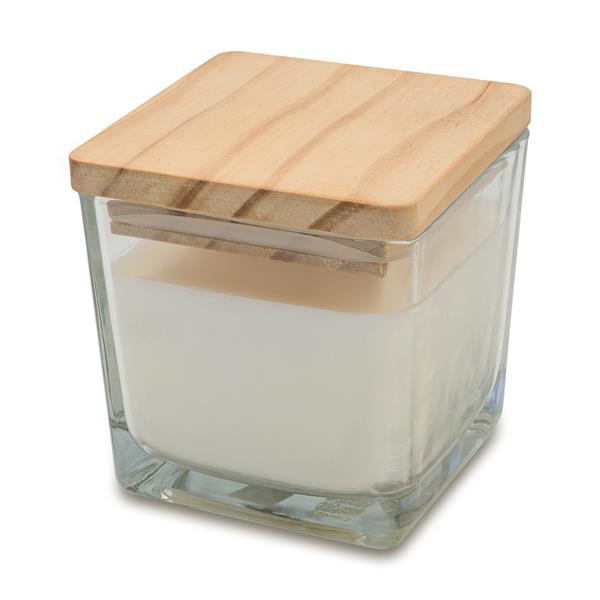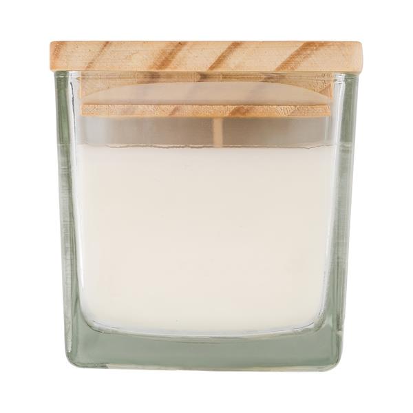 Świeca woskowa o zapachu wanilii na bazie roślinnej w szkle, zamykana drewnianym wieczkiem. Czas palenia: 28 godzin. Waga wosku 200 g.