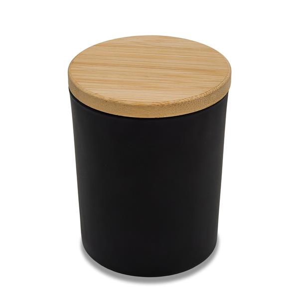 Świeca woskowa na bazie roślinnej o zapachu jaśminu w szkle, zamykana drewnianym wieczkiem. Złoty napis dekoracyjny. Czas palenia: 15 godzin. Waga wosku: 140g.