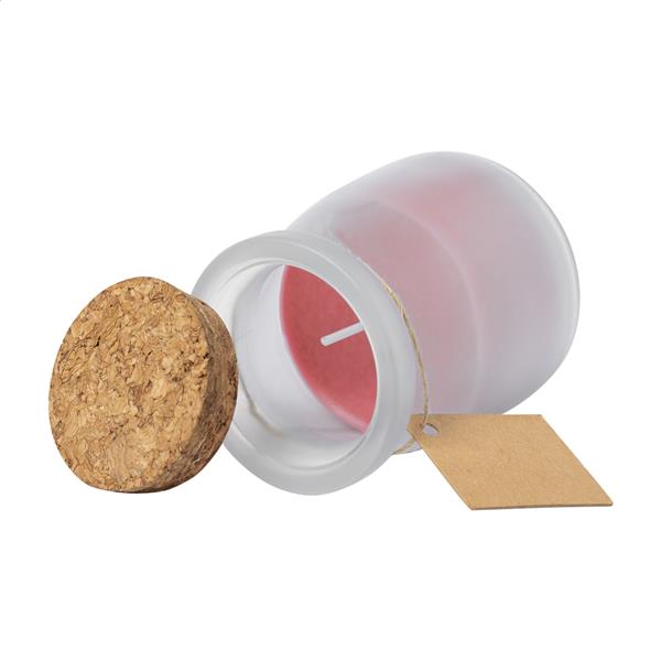 Świeca zapachowa w szklanym słoju z pokrywką z korka.