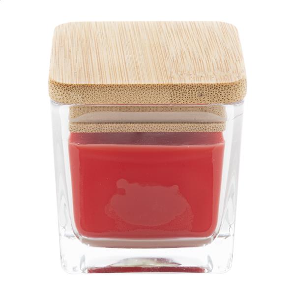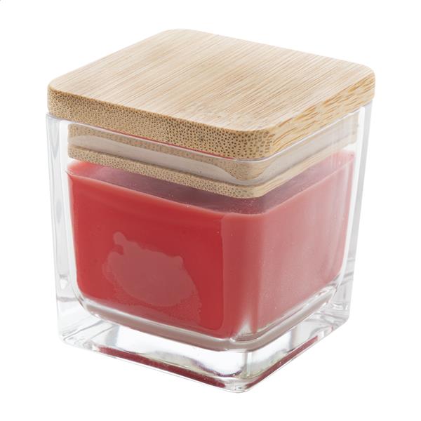 Zapachowa świeca woskowa pochodzenia roślinnego w szklanym pojemniku z bambusową pokrywką. Z 50 gramami wosku. Czas palenia: 8 godzin. W pudełku z papieru kraft.