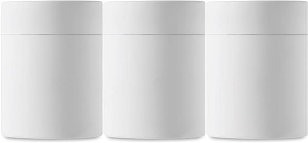 Wosk roślinny, świeca roślinna o zapachu cynamonu, wanilii, drzewa sandałowego lub jaśminu, w szklanym, matowym słoiku z bambusową pokrywką. 200 gr. Czas palenia: 33 godziny. Zapakowana w papierowe pudełko upominkowe w kształcie tuby. Bambus jest produktem naturalnym, dlatego mogą wystąpić nieznaczne różnice w kolorze, wzorze i rozmiarze.